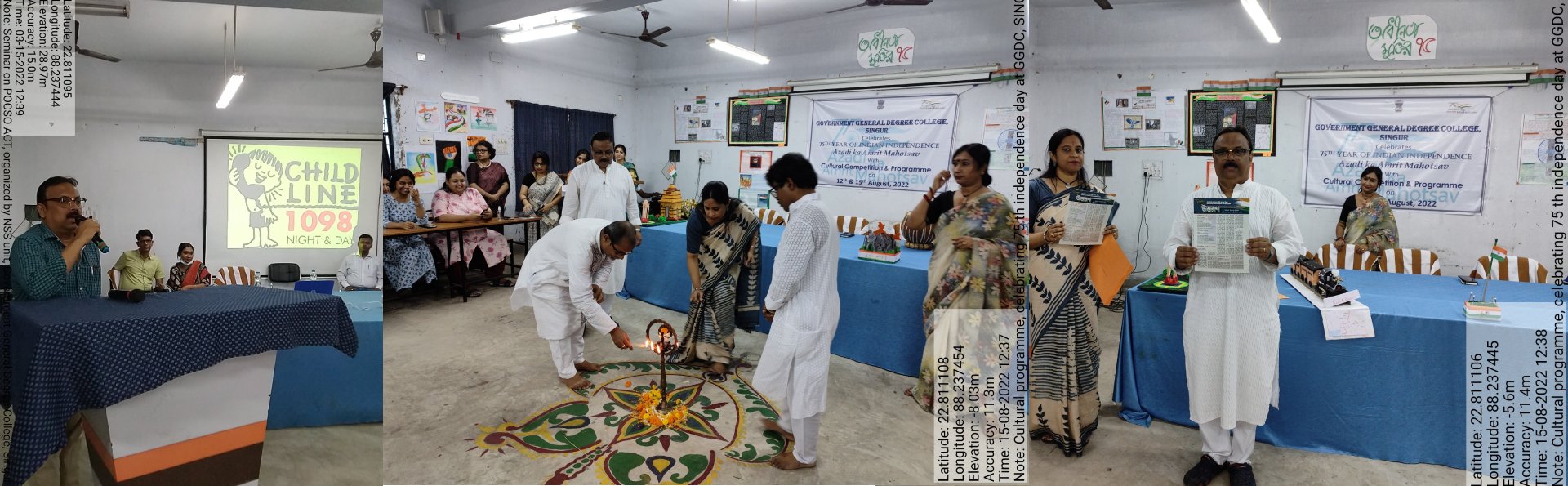 The Hooghly district of West Bengal has always been regarded as a centre of academics with famous ancient Colleges for its discrete and unrivalled glory. The Government General Degree College, Singur affiliated to the University of Burdwan has in fact enhanced the glory of this region to a considerable extent within first five years of its existence.