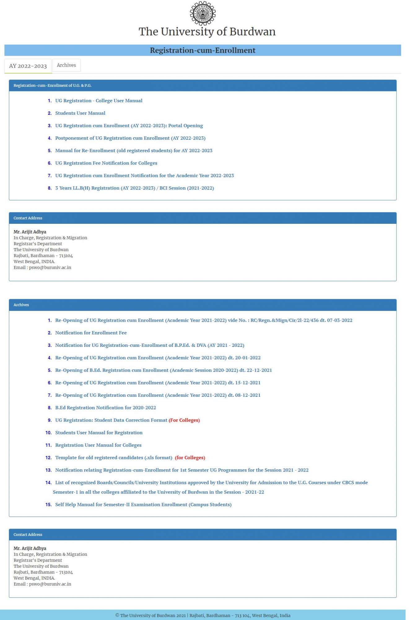 UG Registration cum Enrolment (AY 2022 - 2023)
