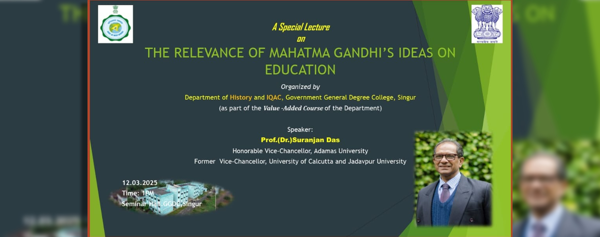 The Hooghly district of West Bengal has always been regarded as a centre of academics with famous ancient Colleges for its discrete and unrivalled glory. The Government General Degree College, Singur affiliated to the University of Burdwan has in fact enhanced the glory of this region to a considerable extent within first five years of its existence.