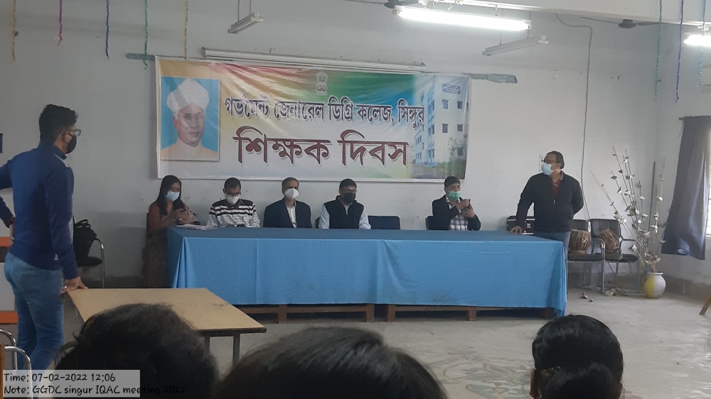A meeting of the IQAC, Government General Degree College, Singur will be held on 7th February, 2022 at 11.30 am.